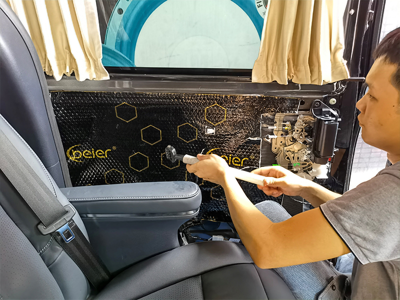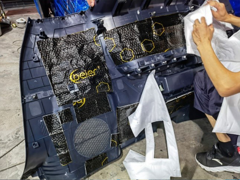 右側(cè)內(nèi)飾板止震和隔音棉施工