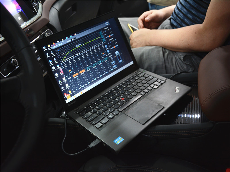 然后是調(diào)音環(huán)節(jié)JAS無損專用DSP需要用筆記本電腦調(diào)試,技師坐在駕駛位上調(diào)試出一個(gè)(定位)位置通俗易懂也就是說聽音效果很好的位置