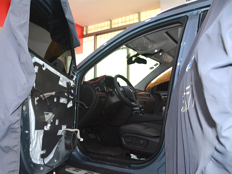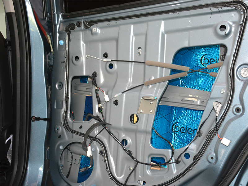 車(chē)門(mén)外層隔音施工,貼得整齊,壓得嚴(yán)實(shí),