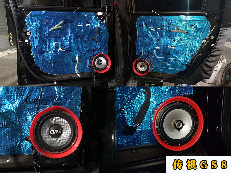 老規(guī)矩先看配置,這邊前門(mén)是裝了QRS的KS165的套裝喇叭,后門(mén)是AC的同軸,外加一個(gè)圣美歌的C8處理器。四門(mén)三層貝爾隔音。