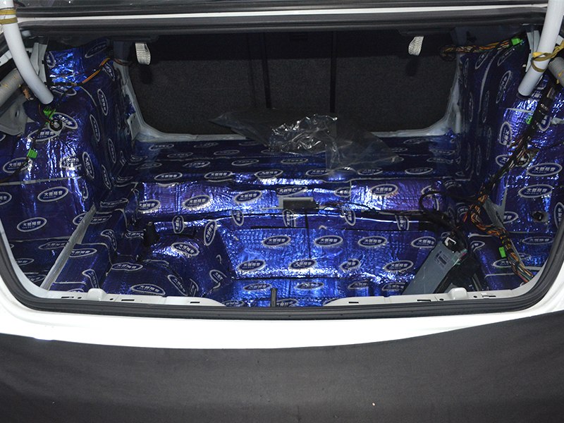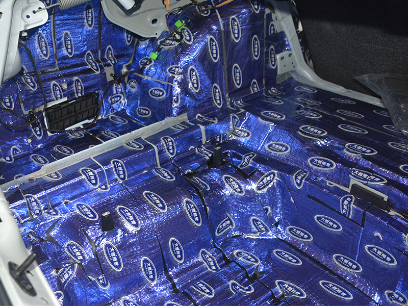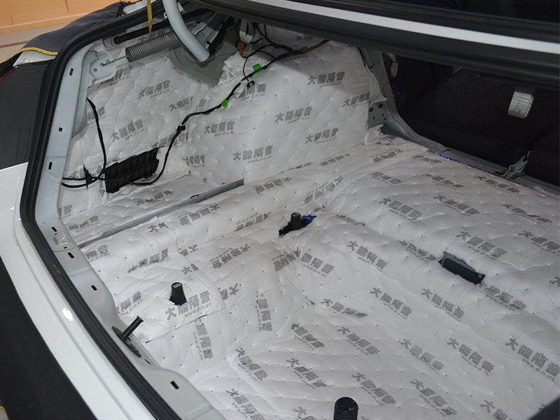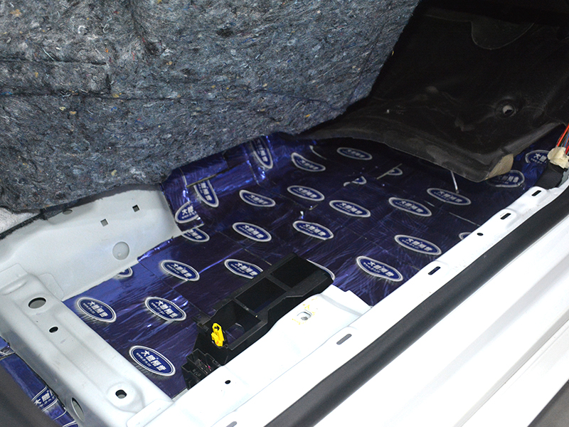 尾廂右側(cè)葉子板粘貼大能的溫莎吸音棉,有這層吸音材料,可以有效減少尾廂共震,共鳴,效果顯著