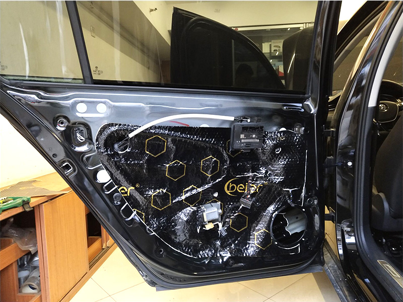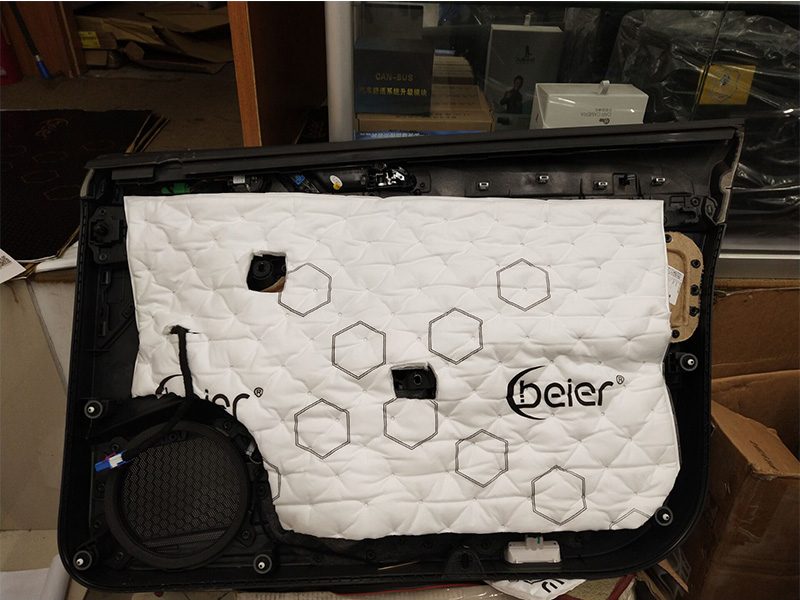 車門隔音工藝:車門鈑金里外2層貝爾環(huán)保隔音減震+1層貝爾吸音棉,一共為3層隔音處理