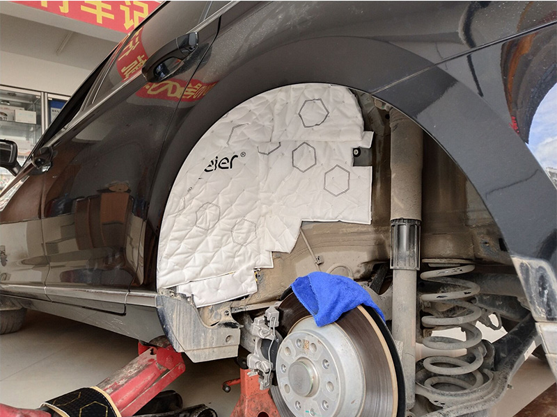 前后輪弧和翼子板位置是汽車隔音降低胎噪的關(guān)鍵點,因為胎噪路噪90%都從這個位置導(dǎo)入車內(nèi)的,在前輪弧和翼子板加強抗震和密封進行隔音降噪處理,使這部分噪音阻隔在車身之外