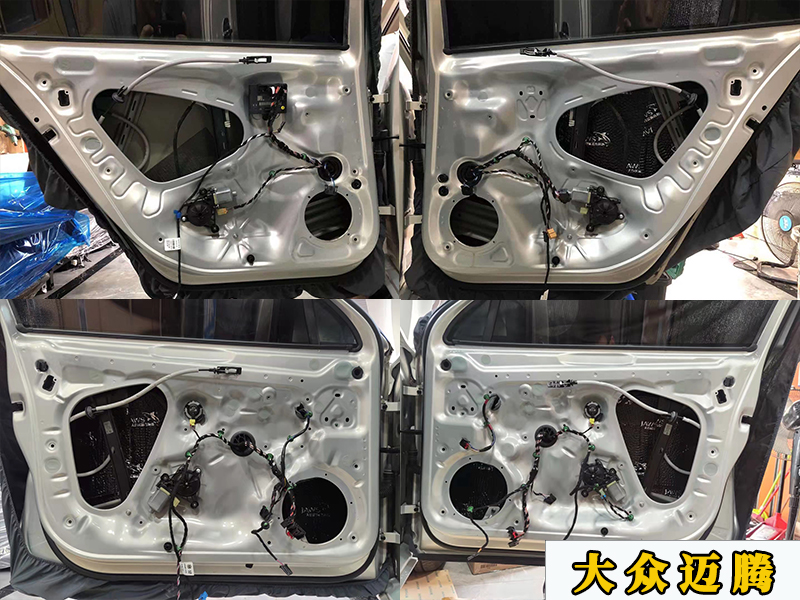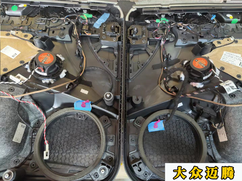 這是第二層隔音和喇叭的安裝,這里需要更換邁騰專用的喇叭墊,外面再加一層防水罩。全程無損的,補(bǔ)損壞原車的線材和門板