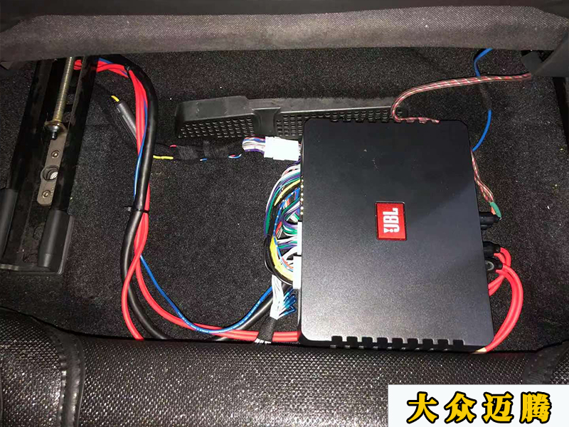 JBL的處理器也是比較小個的,這里也是直接安裝在座位下面的。用一條邁騰的專用對插線來連接中控,直接插上去就可以用了,不用改線破線。喇叭和處理器安裝完之后就可以進(jìn)行復(fù)位了。后面就剩下電腦調(diào)音了,不知道你覺得怎么樣呢?