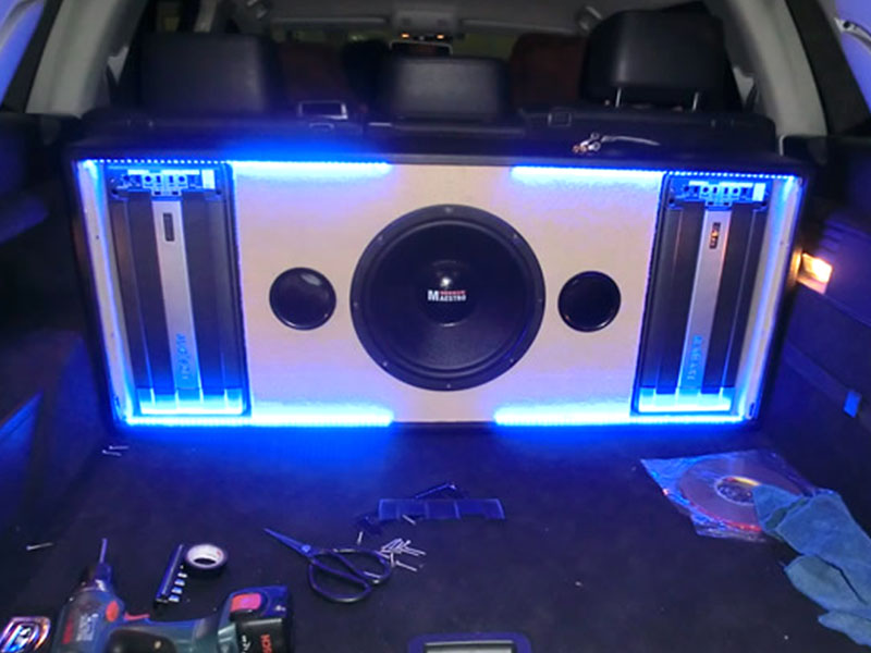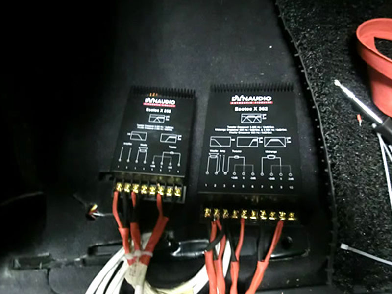 前聲場丹拿S3423分頻喇叭,后聲場丹拿S242,功放選用高性價比的歐迪臣LRX2.9,低音為曼斯特SW12,,12寸德國原裝低音炮,配上上好的線材和來福10法拉電容,很快,師傅就開工了。
