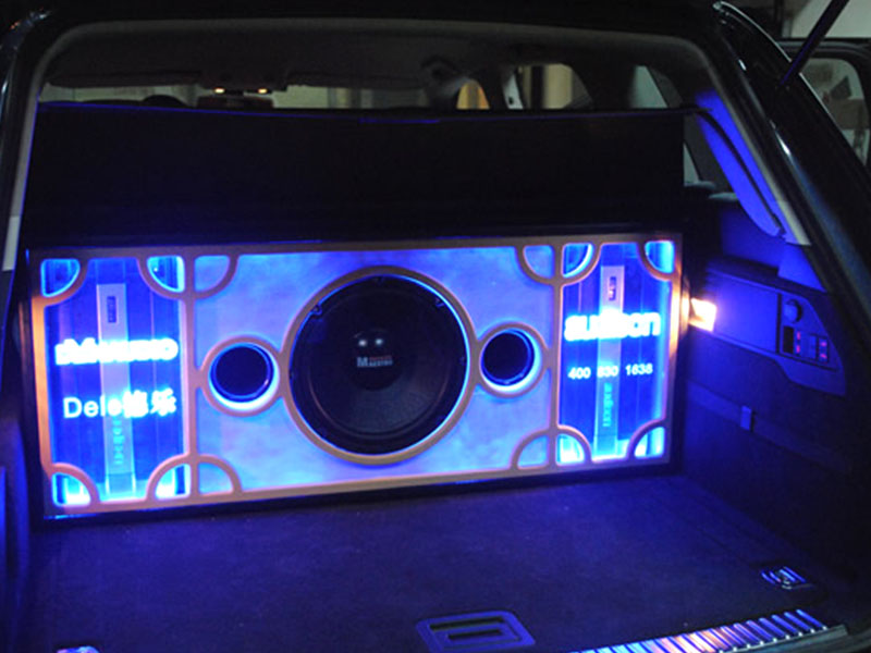 后備箱的布局和安裝完成后,師傅們又琢磨加上藍色彩燈和有機玻璃,使它更加美觀絢麗。