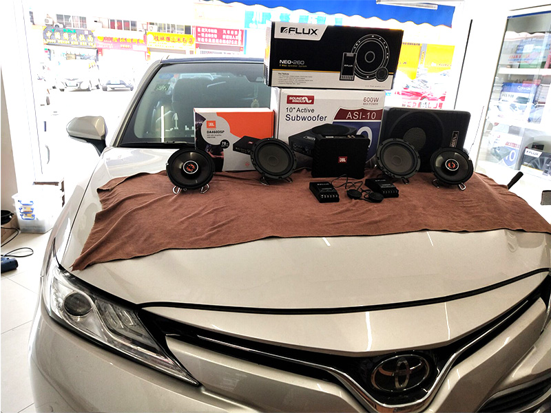 豐田凱美瑞不管是8代還是9代,音響系統(tǒng)部分除主機(jī)有區(qū)別外,喇叭的個數(shù)基本沒有什么區(qū)別,不管是現(xiàn)在的混動版還是汽油版,如果喜歡聽人聲跟流行音樂,并且只想無損改裝,那么你可以更換前后門喇叭,前門選擇套裝后臺版選擇一支同軸就可以完成安裝,如果效果想在好一點(diǎn),那么在增加一臺dsp,功放就可以搞定,今天這位車主就是這樣做的,具體選擇的方案如下: