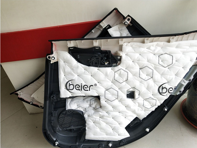 第三層,使用貝爾獨(dú)特的溫莎吸音棉,對門板之間的摩擦異響進(jìn)行吸音隔音。讓整車更加的安靜。
