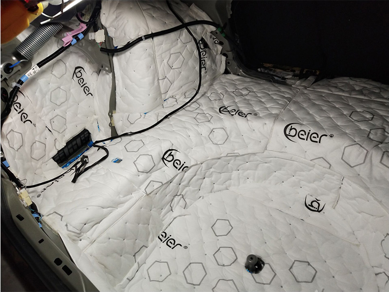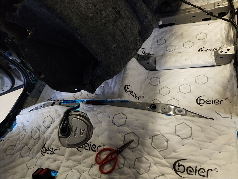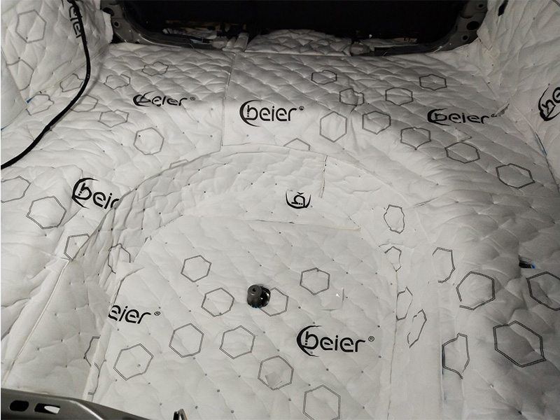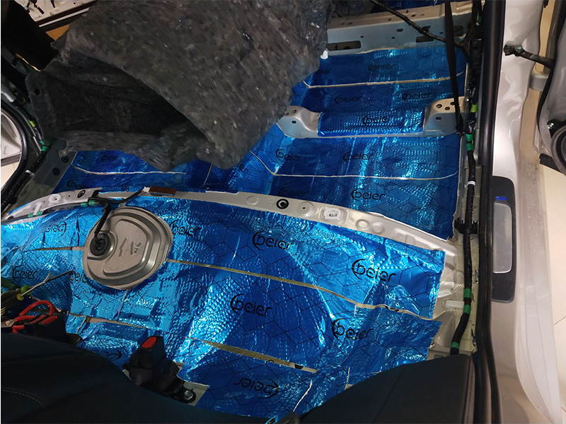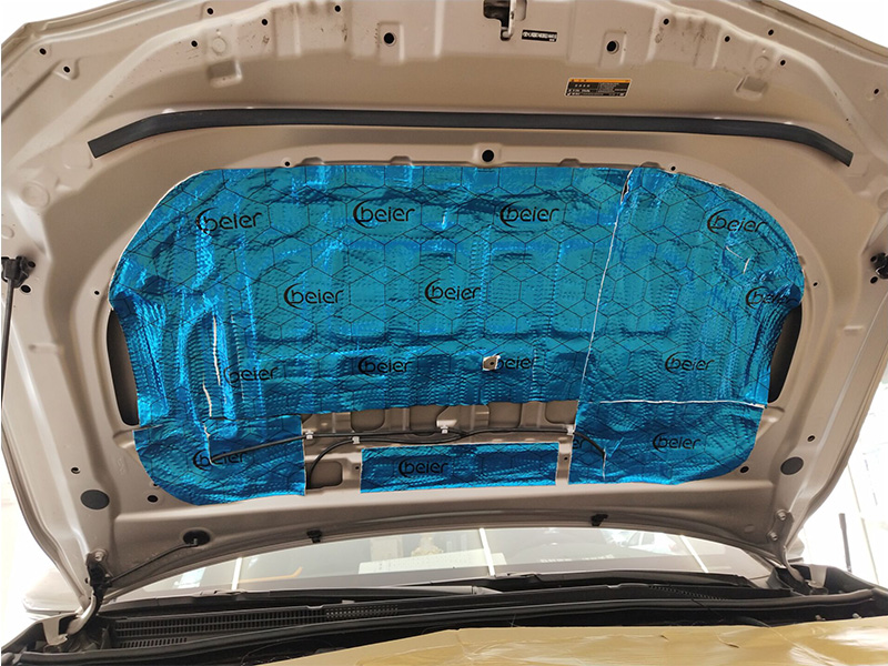 全車隔音不能缺失的就是引擎的隔音,他是離發(fā)動機(jī)最近的鈑金之一。必須使用專用隔熱膜進(jìn)行降噪