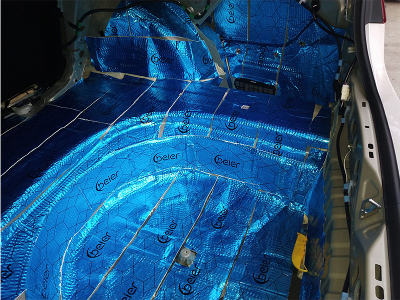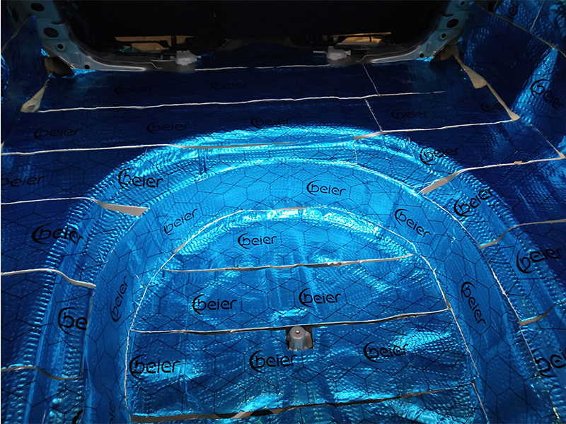 底盤和尾箱是最容易傳播低頻噪的導(dǎo)體之處,因?yàn)槊娣e大更加容易聽到車輪行駛過程中車輪與地面摩擦所發(fā)出來的聲音(低頻噪音),先要處理這些低頻的第一步必須加厚原車鈑金降低共振點(diǎn),第二層進(jìn)行吸音棉處理(千萬記住加厚的地方加厚,不需要加厚地方不要貼哦。否則會打破原車的聲音平衡點(diǎn),失去該有的效果)