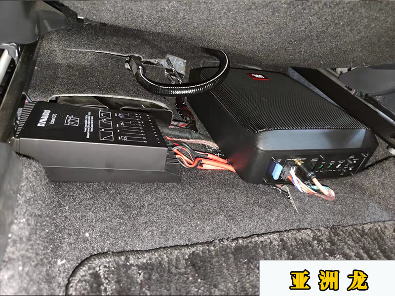 阿爾派的處理器可以調(diào)節(jié)聲場,這里是安裝在座位底下。直接用一條專車專用的對插線直接對插就好了。