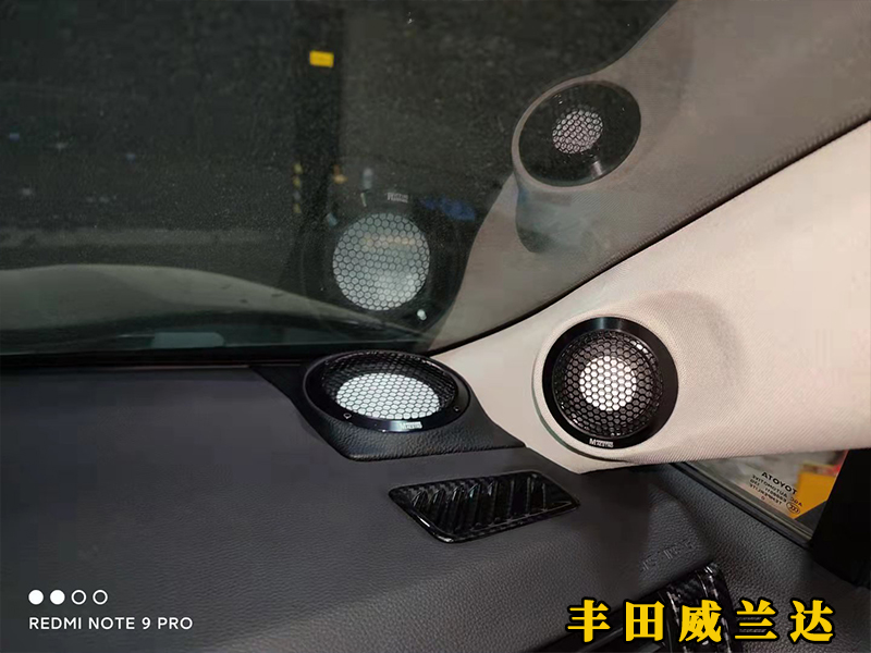 威蘭達的原車前門是兩分頻的,這里升級三分頻則需要倒模,中低音在原車的位置,高音倒模到A柱上面,中音倒模在A柱的旁邊。車主后門之前是升級過的了,這里就不多講了