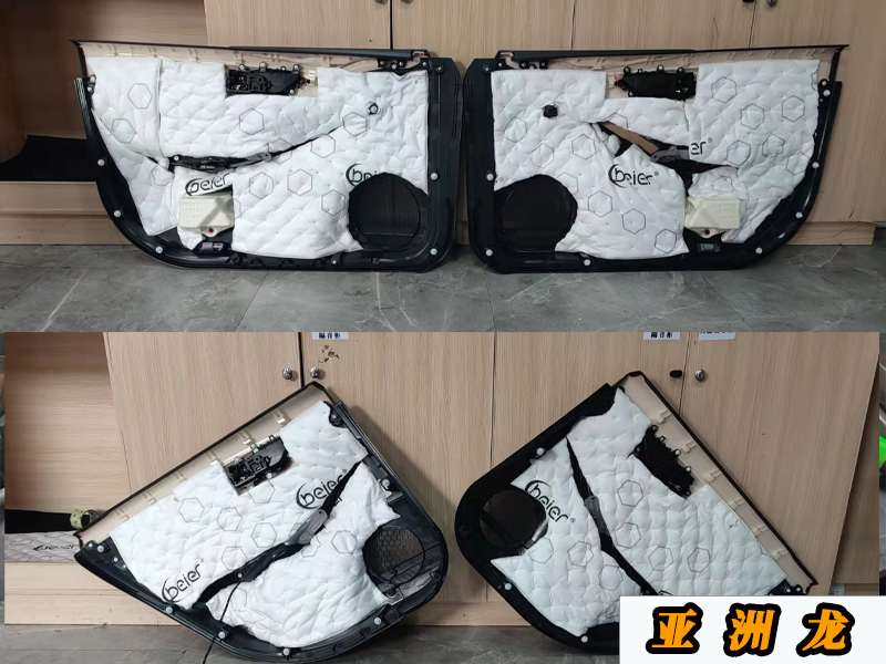 門板隔音的話是很有必要做的,畢竟升級后的喇叭功率是比原車大很多的,原車的門板鐵皮也比較薄。不做隔音的話很容易產(chǎn)生共振,影響音質(zhì)效果!隔音一共是3層,兩層的止震板一層吸音棉。