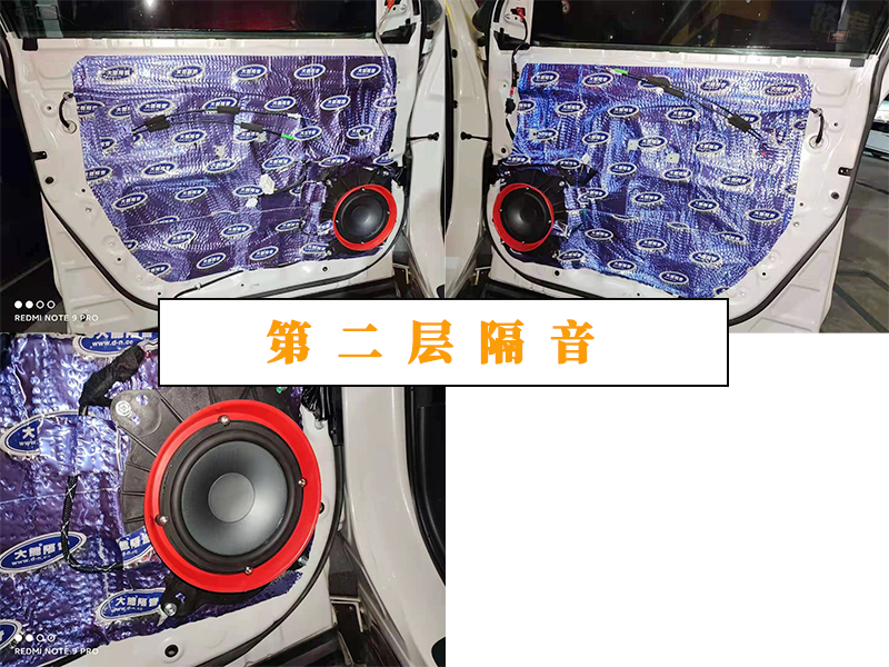 第二層隔音和喇叭的安裝效果如上。第二層隔音有制造箱體和密封的作用,可以讓音質(zhì)有一個更好的循環(huán)和減少失真。喇叭的安裝使用專用的喇叭墊還有防水喇叭罩。可以說就是零損耗的升級。完全不用擔(dān)心說會對您的車大動干戈的那種。
