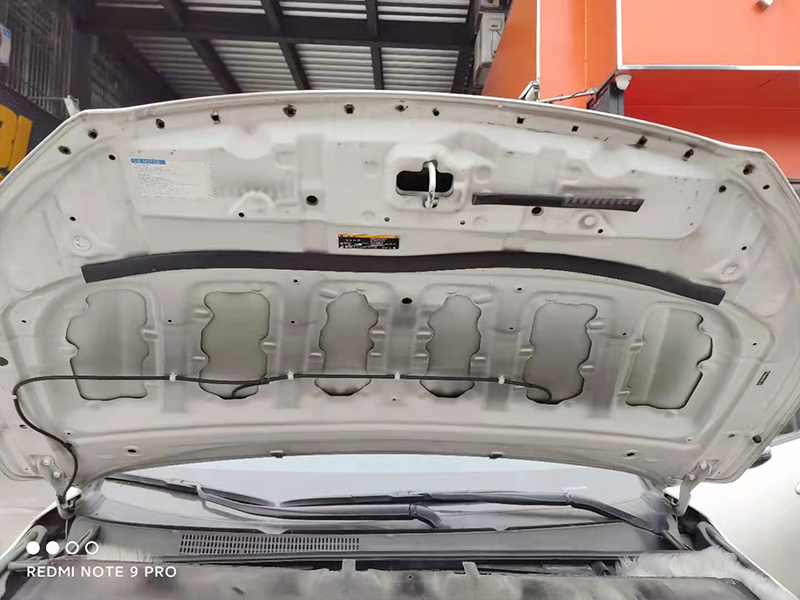 引擎蓋上也做了隔音和一層隔熱板,主要作用還是減震和有效隔熱,我們都知道汽車的引擎蓋很多時候都是可以煎雞蛋的。所以做一下隔熱還是挺不錯的。