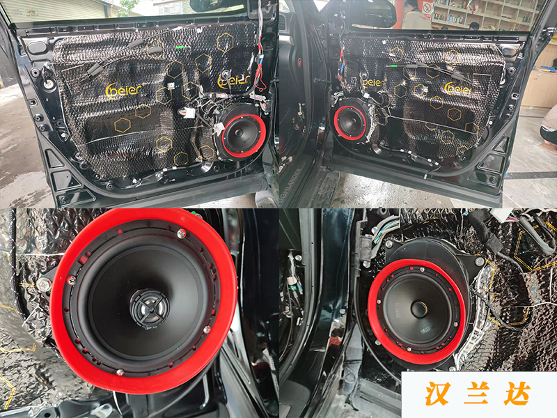 四門(mén)得喇叭都是貼好兩層隔音之后才可以更換升級(jí)得。喇叭是在原安裝位無(wú)損升級(jí)的,用了專(zhuān)車(chē)專(zhuān)用的防水罩和喇叭墊。固定的時(shí)候直接用回原車(chē)的螺絲。高音的估計(jì)也是用回原來(lái)的螺絲。