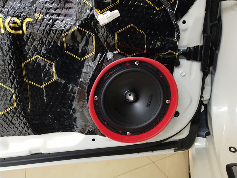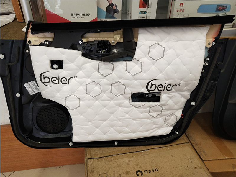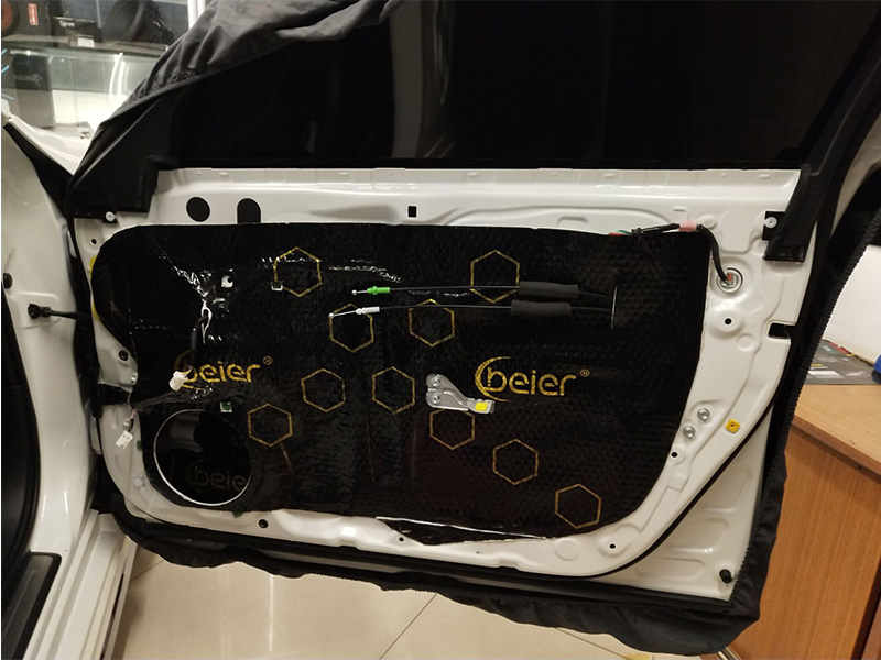 本次改裝四門隔音共做了三層。第一層將減震板緊緊貼于門板之內(nèi)。