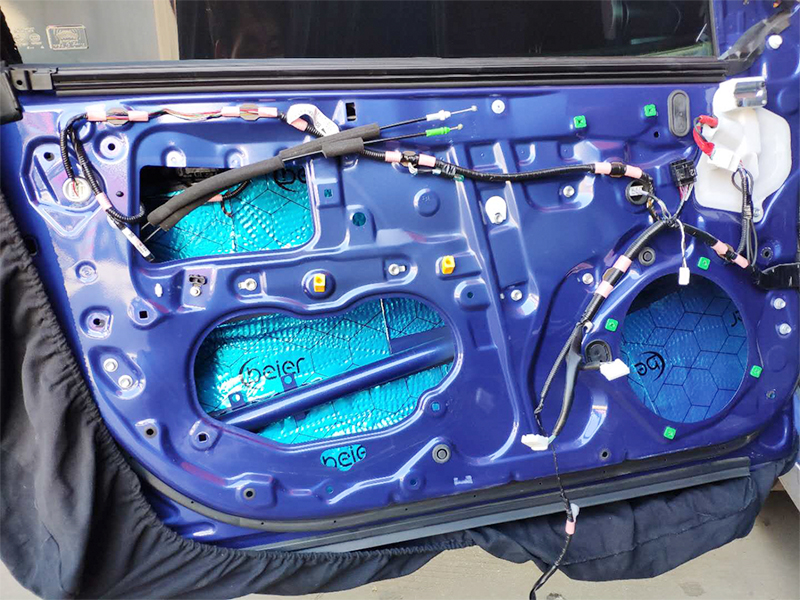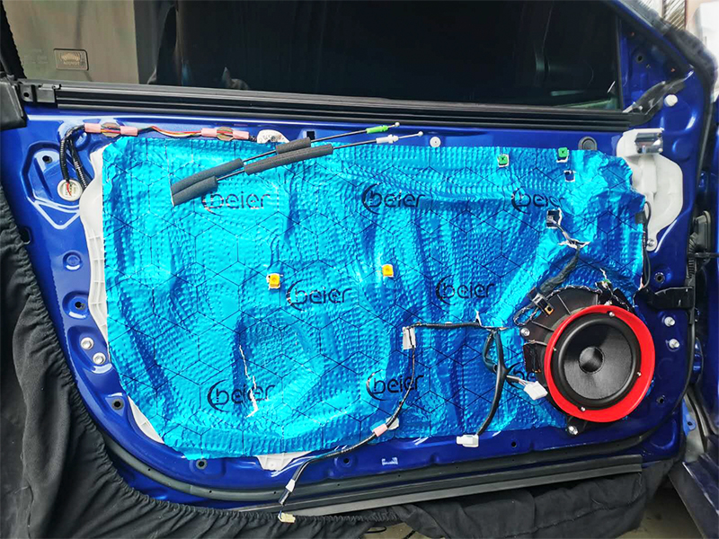 四門(mén) 第一層隔音,使用15年大品牌貝爾隔音對(duì)單薄的鐵皮強(qiáng)化厚度,減少共振點(diǎn),這個(gè)對(duì)后期升級(jí)的音響發(fā)揮效果有直接的聯(lián)系