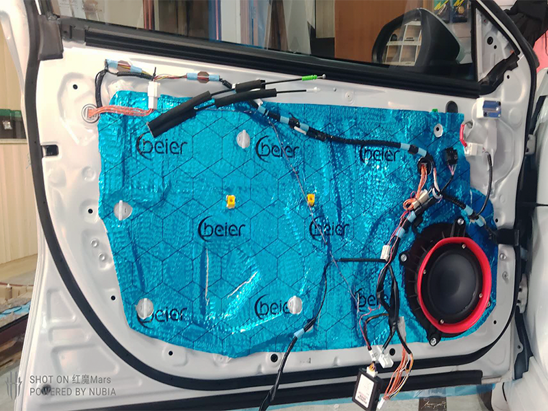 第三層使用貝爾的專業(yè)吸音棉填充多余的門板裂縫,防止原車的硬件共振產(chǎn)生異響