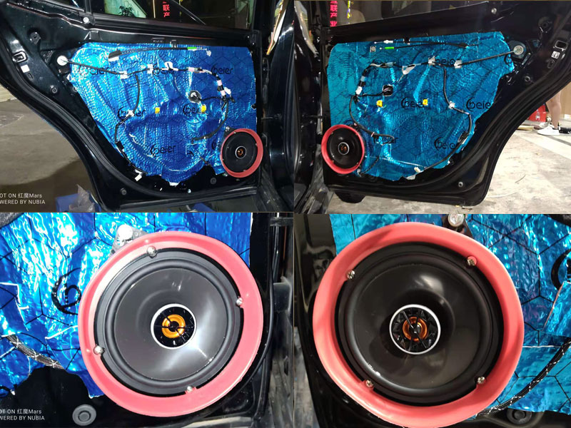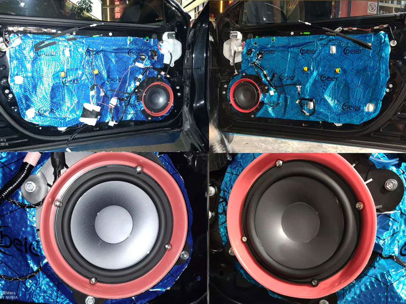 接下來的第二層隔音也是至關重要的。它可以讓你車內(nèi)的傳播環(huán)境更干凈。降噪隔音的同時也能增加回響。讓聲音更為渾厚和清晰,喇叭的安裝我們都是有專車專用的喇叭墊。喇叭上也套上了我們的專利產(chǎn)品-麗音防水喇叭罩。延長喇叭的使用壽命