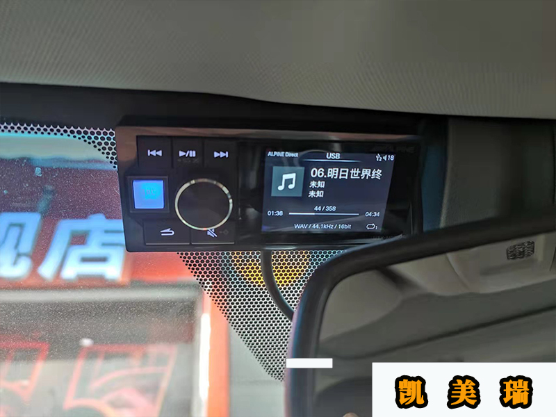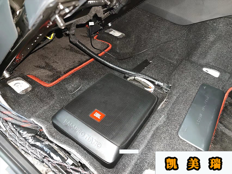 JBL的超薄低音炮和M08的主機(jī)都是放在座位下面的,主駕駛一個(gè),副駕駛一個(gè),其中這臺(tái)M08是不用倒模的。因?yàn)樗目刂泼姘迨仟?dú)立的,可以放在任何地方,只要方便操作就可以了。