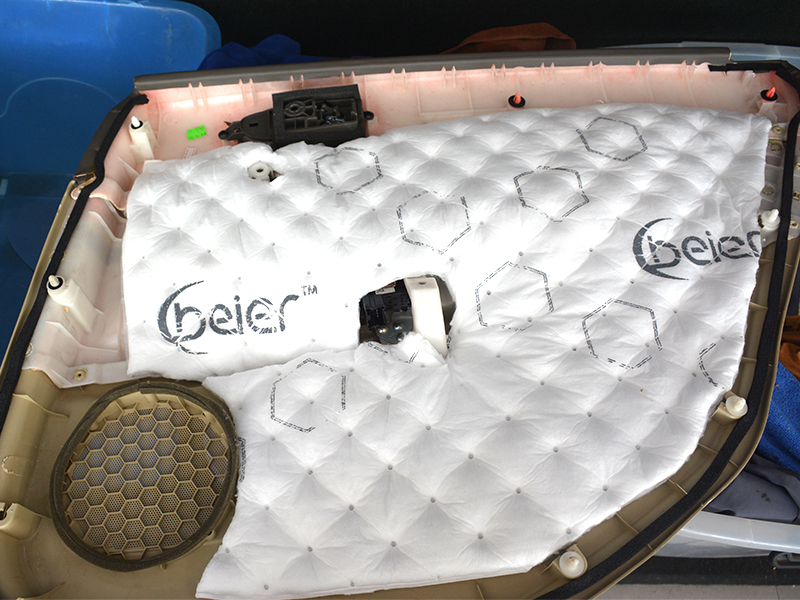 車門板粘貼貝爾溫莎,能吸收車門共震產(chǎn)生的大部分共鳴聲