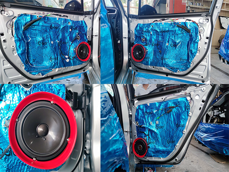 豐田卡羅拉以代步車為出名,原車音響喇叭非常的劣質(zhì),原車帶來的只有4個喇叭。現(xiàn)在車主要求升級6個喇叭的音響以及隔音必須要求最好的。經(jīng)過對比后決定使用JBL音響喇叭+貝爾隔音材料