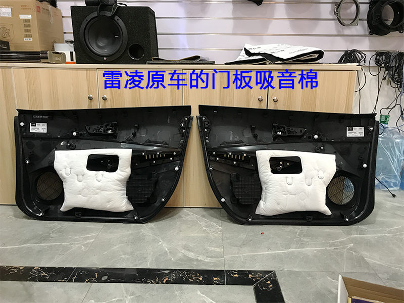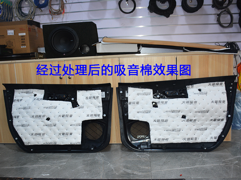 原車(chē)拆卸下來(lái)額門(mén)板,只有薄薄的兩張白棉根本起不了任何的吸音作用
