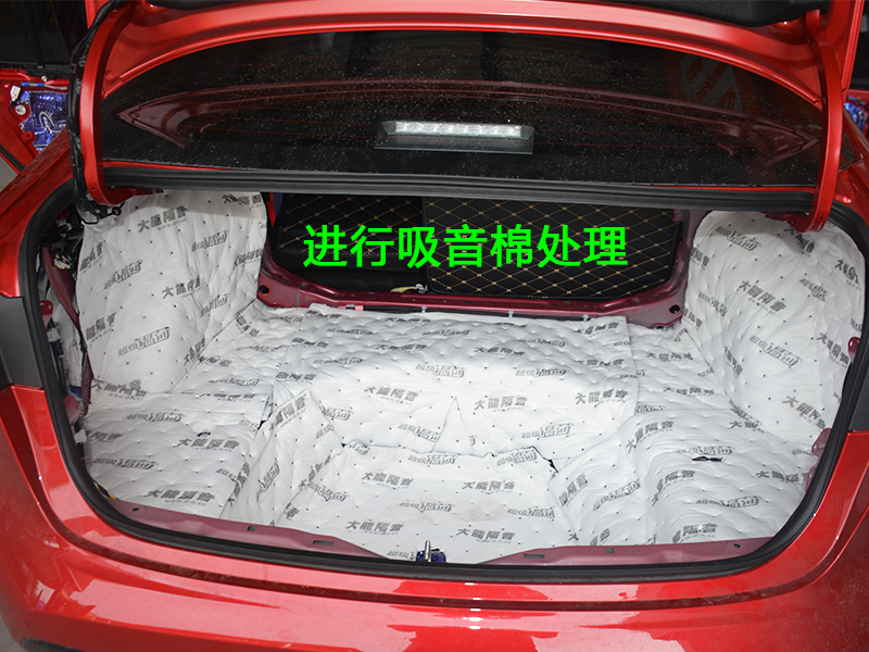 第二層進(jìn)行吸音棉處理(千萬(wàn)記住加厚的地方加厚,不需要加厚地方不要貼哦。否則會(huì)打破原車(chē)的聲音平衡點(diǎn),失去該有的效果)
