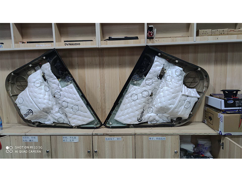 使用貝爾的止震板對原車門板的鈑金進行加強厚度減少共振點,防止異響提升音響效果