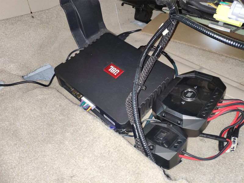 豐田霸道原車音響系統(tǒng)分析:原車為6喇叭為被動音響系統(tǒng),而且原車廠家為了能節(jié)省成本只能在娛樂版塊節(jié)約,所以原車自帶的喇叭一般是以膠殼和紙皮喇叭為主,不但音響效果差而且使用壽命短。車主經(jīng)過多方的對比了解,而且對JBL品牌情有獨鐘,所以找到我們廣州JBL唯一授權旗艦店試音對比,最后決定升級全套JBL音響喇叭