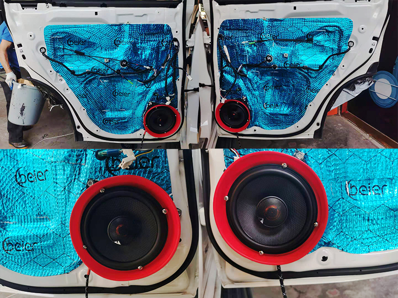 升級的配置是一套中低音和一套同軸外加一個DSP。全部升級全車6個喇叭。新年新氣象,當(dāng)然我們的內(nèi)部車衣(隔音)也要換新的啦是吧!我們這里還是老規(guī)矩升級四門隔音先,營造一個良好的音質(zhì)環(huán)境。
