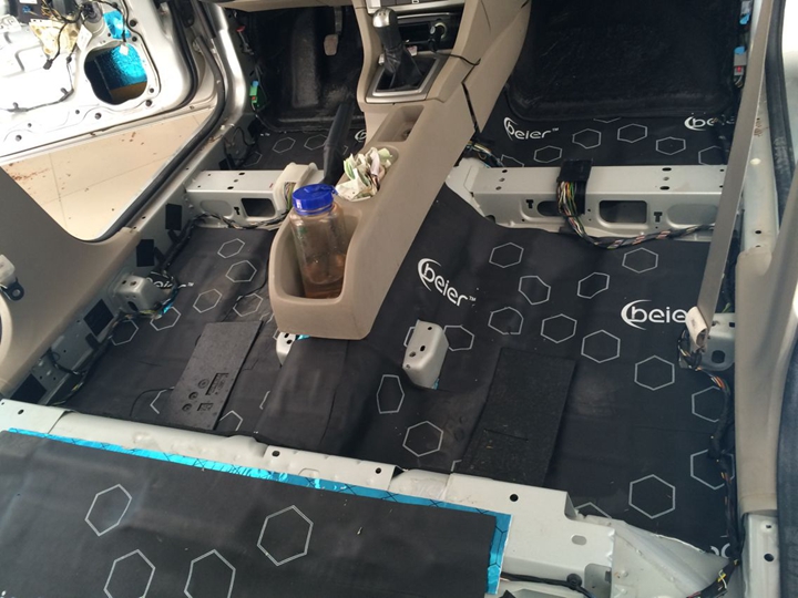 隔音的目的是為了降低路噪、降低外來熱量、車門結實度增加、完全發(fā)揮喇叭的最佳效果。對這個部位我們采用貝爾藍魔隔音處理+貝爾吸引棉,將有效的降低通過車門的大量路噪,減少門板共振,更可以因為將車門變成音箱而大幅度提高安裝在車門上喇叭的音質。安靜從此處開始~