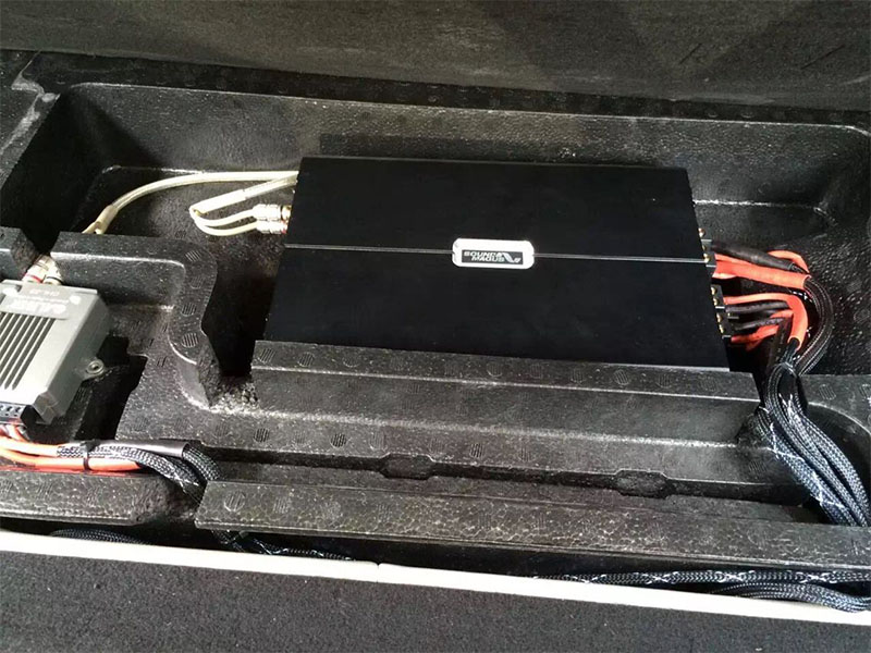 圣美歌功放安裝在后尾箱蓋上墊子后看不見節(jié)省空間