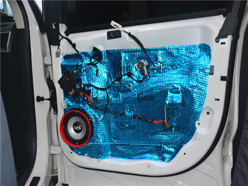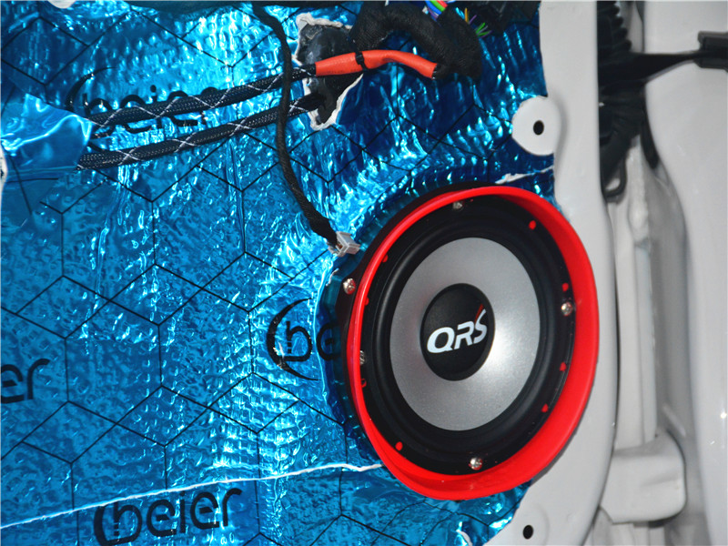 對于30來萬左右的SUV車來說稍微對音樂有點(diǎn)要求已經(jīng)不能滿足他們的聽音要求水平,下面我們來看看是怎么改裝音響及隔音的。 我先來介紹一下配置:前門用的是原裝進(jìn)口意大利QRS AS-165二分頻套裝 4歐實(shí)際功率50W,后門用的是原裝進(jìn)口意大利QRS AC-165同軸4歐實(shí)際功率40W用一臺(tái)圣美歌PK700.4 100W*4 大功率四路實(shí)際輸出D類數(shù)字功放推動(dòng)配上QRS綜合型音色讓它發(fā)揮淋漓盡致高音甜、中音準(zhǔn)、低音勁、用一句話描述就是通透。再配上惠威V6 8寸小鋼炮來補(bǔ)充聲音的超低音頻段使聲音更加耐聽。
