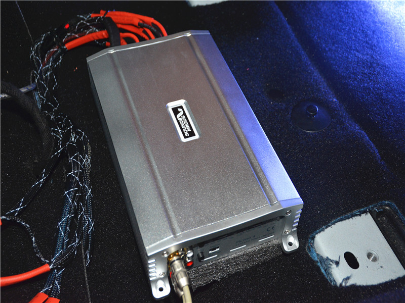 圣美歌HTL-8高轉(zhuǎn)低和中國圣美歌PK700.4 四路功放都安裝在座椅下方不但散熱好并且隱蔽