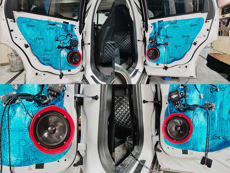 按照慣例我們第一步就是要升級(jí)全車隔音。我們一般的套餐都是給四個(gè)車門做隔音。當(dāng)然有些高追求的車主對(duì)葉子板,底盤,葉子板。引擎蓋,后尾箱等都做了隔音。只要您有需求。我們一定能服務(wù)好您,這里主要是使用貝爾的藍(lán)膜來(lái)給車門內(nèi)壁做隔音。主要是隔音和減少共振