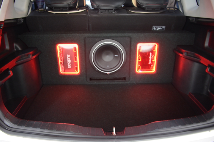 新車剛辦完手續(xù),處于愛好就對音響做了改裝,經(jīng)過多次了解最后還是選擇了一家專業(yè)的改裝店 廣州德樂汽車音響做了改裝,前門喇叭,用一套法國勁浪PS165FX3喇叭,后門保留原車喇叭不動,前門選用的是先鋒發(fā)燒級主機P99,外加單路低音功放一臺,來推動10寸雙音圈低音。因為考慮到這車是通體的,所以經(jīng)過師傅推薦選用了10寸低音,很好的利用了后箱的空間,做了一個補型箱體,再講兩臺功放固定在箱體,加上燈光。美觀大方實用,也方便后期調(diào)音。與大家分享一下吧!