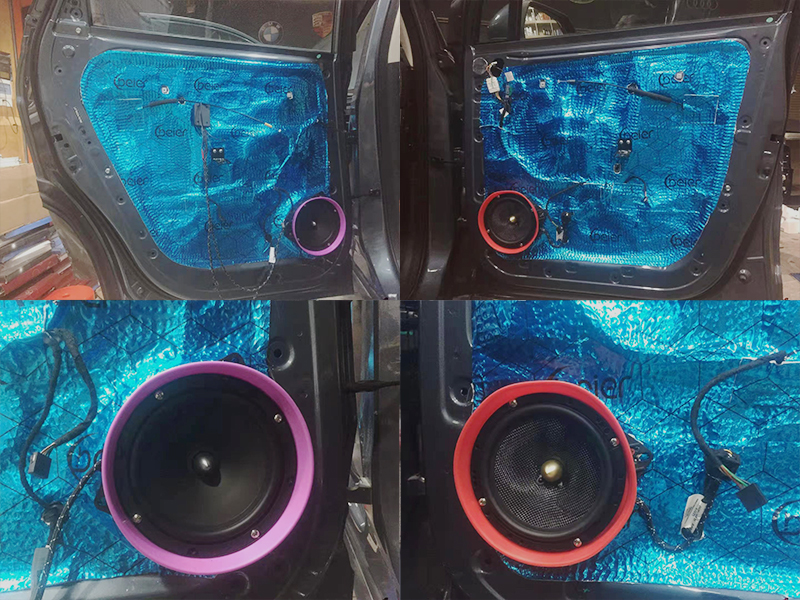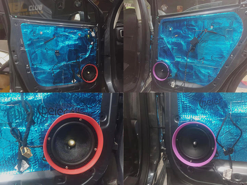 因為車主之前是做過隔音的,所以第一層隔音是不用我們做的,我們直接給做了第二層隔音和安裝喇叭!雖然不是我們的喇叭,但也是專車專用的,配上我們的專用喇叭墊和防水喇叭罩,安裝也就一會的事。你們可以看一下安裝的一些細(xì)節(jié)。