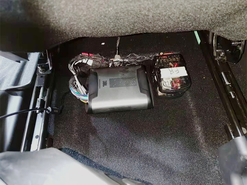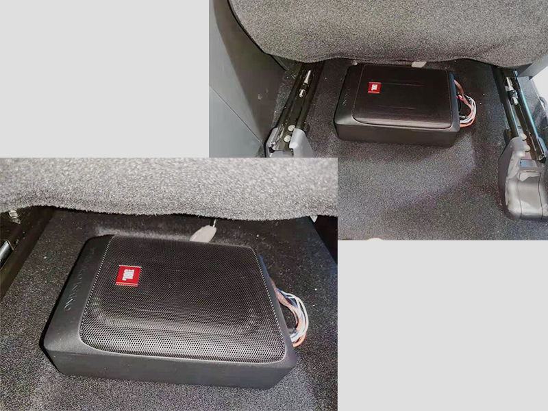另外還有一個超薄的低音炮。直接安裝在座位底下的。