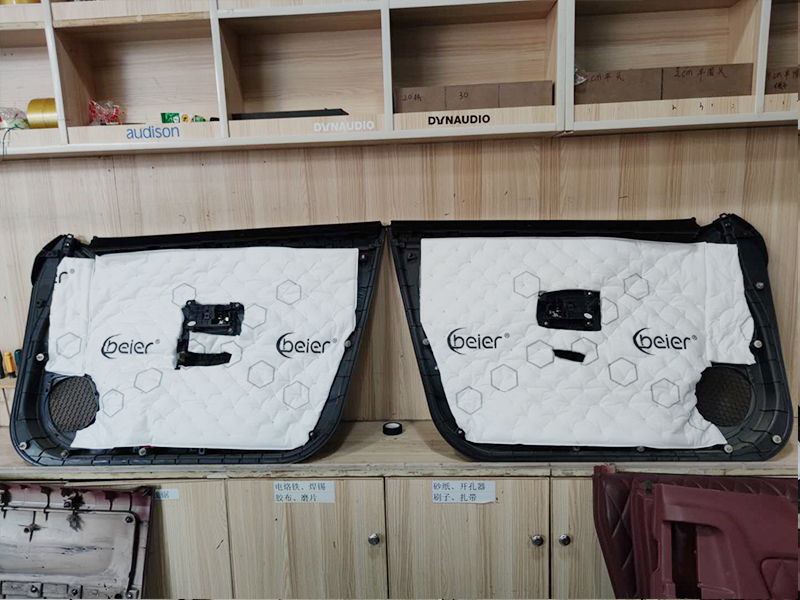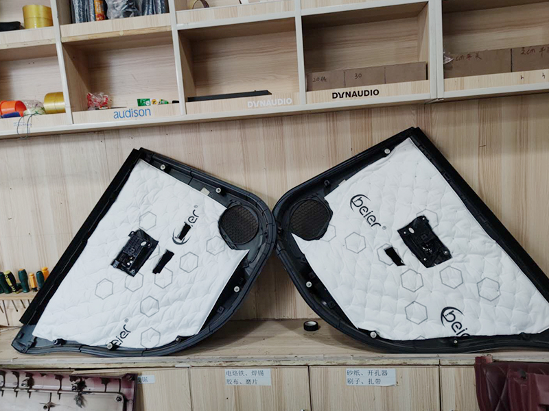 第三步我們做的是吸音。使用吸音棉來給車門加一層厚實的降噪層。能很好的吸收外面的噪音和制造一個好的循環(huán)環(huán)境。