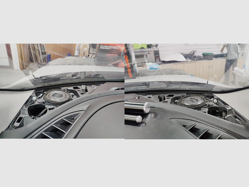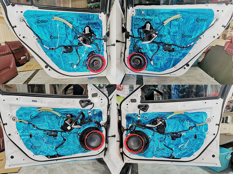 我們會使用保護膜環(huán)繞您的車身,防止剮蹭。升級音響永遠要先做四門隔音。有些車主要求高的是全車隔音,包括葉子板,引擎蓋,甚至是整個底盤。使用的材料是貝爾的隔音藍膜,黏貼式的