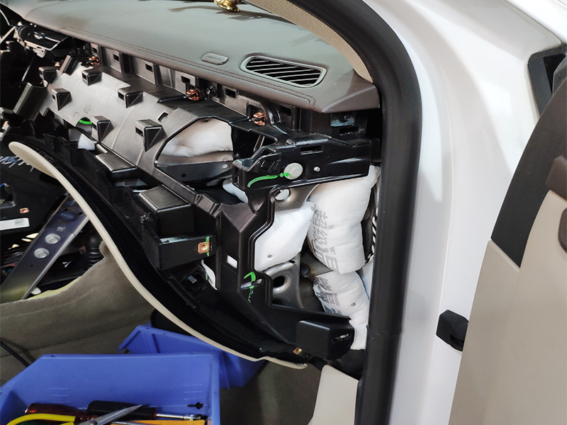 接下就是防火墻填充,對于非專業(yè)店來說屬于比較陌生的一個項(xiàng)目。但是經(jīng)我們和廠家研究人員反復(fù)試驗(yàn)中,得出一個最好的防火墻無損填充隔音。有很車主都會感覺發(fā)動機(jī)傳來的噪音令人難受,以前原始的方法就是拆卸儀表工程量大、費(fèi)用高、好時長。現(xiàn)在就是同樣效果的方式就會防火墻填充:價格便宜、無損安裝、安裝時間短、效果明顯.