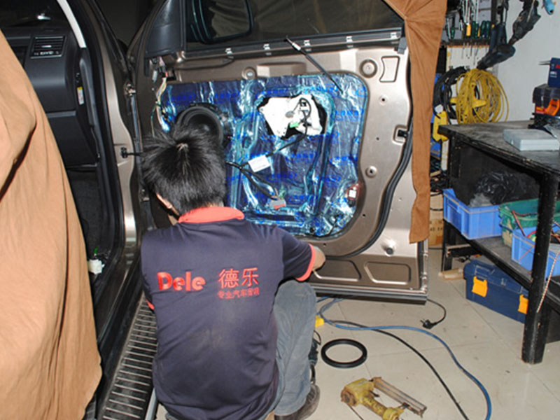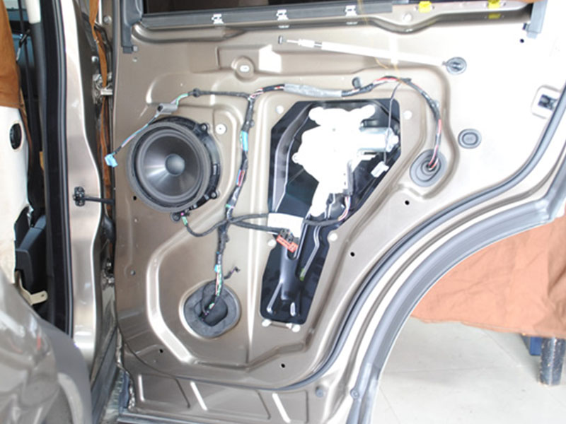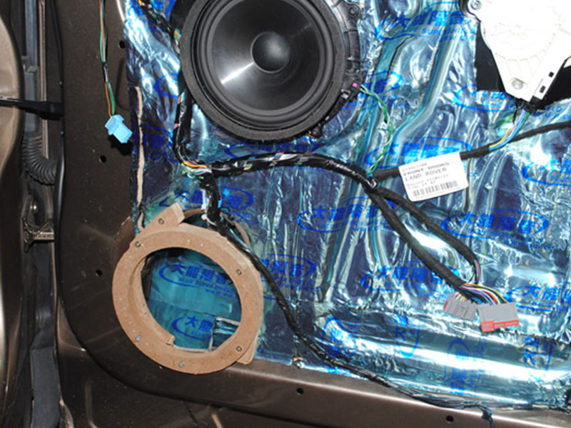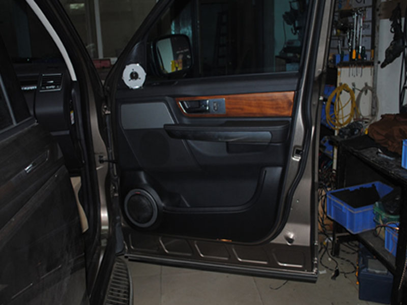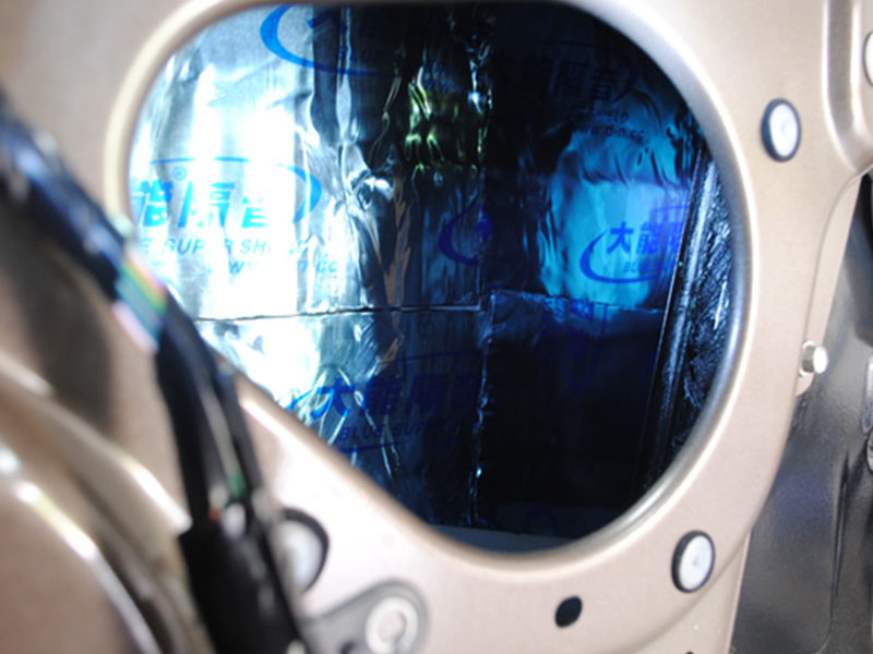 車門內(nèi)層隔音,是師傅從小孔伸進去仔細(xì)貼好的,上圖可是貼得很滿,很整潔。不得不說的是,路虎自身門鈑金還挺厚的,不過,車門的隔音,對音響改裝而言,可是大有用途哦