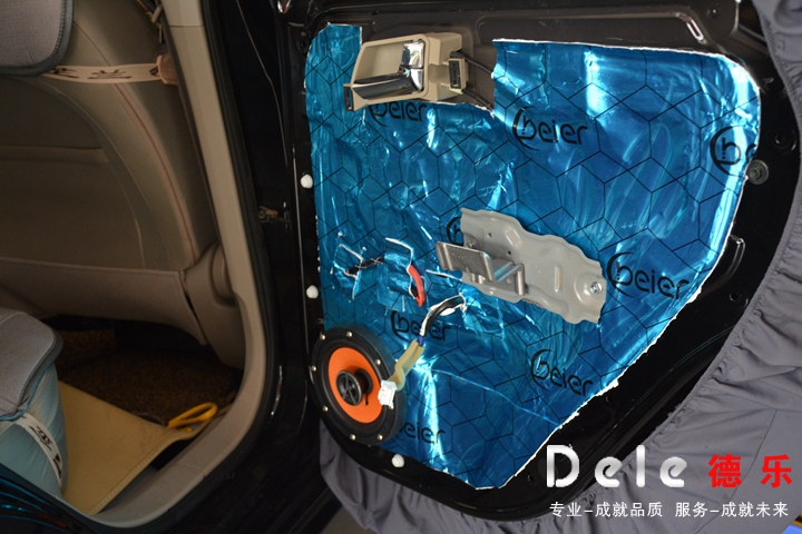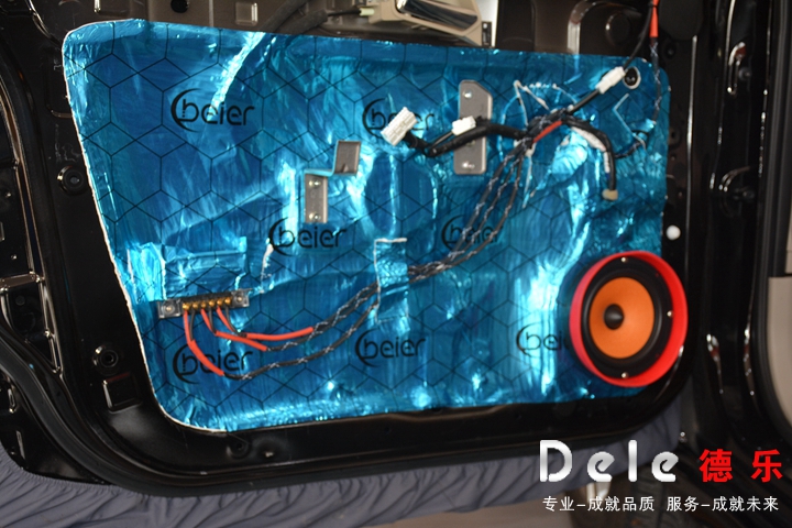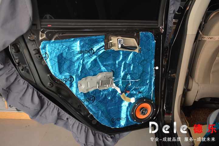 外層隔音后將門(mén)板密封,代替之前那張膜起到最基本的防水作用,還能有效阻隔外界噪音向駕駛艙的傳入,并且提升安裝在門(mén)板上喇叭的聲色質(zhì)量,對(duì)音響效果提升更顯著。