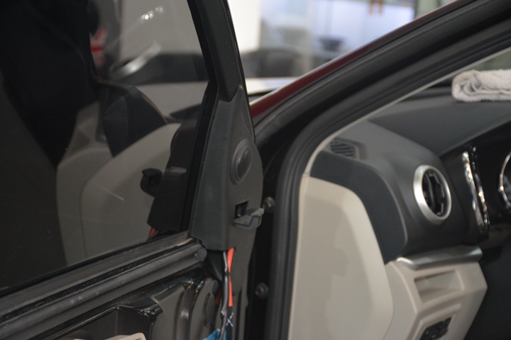 由于原車(chē)沒(méi)有高音位置,所以在3角位置開(kāi)了小孔,將威瑪仕的高音安裝進(jìn)去。