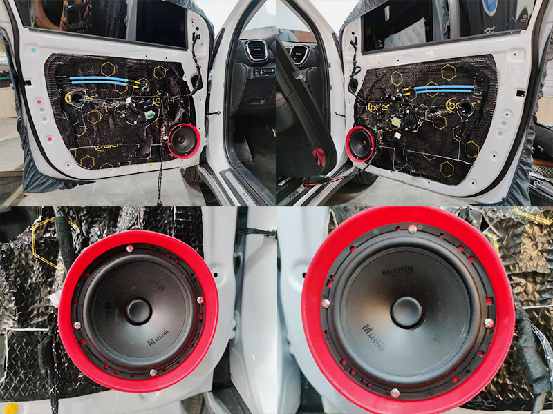 都安裝完之后,我們便可以貼上吸音棉。復(fù)原車門然后就可以調(diào)音了,調(diào)音是技術(shù)人員和您一起在車?yán)锩嬉贿呎{(diào)試一邊聽的哦,爭取調(diào)出最適合您,您最喜歡的頻率。
