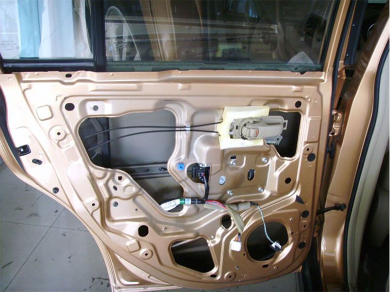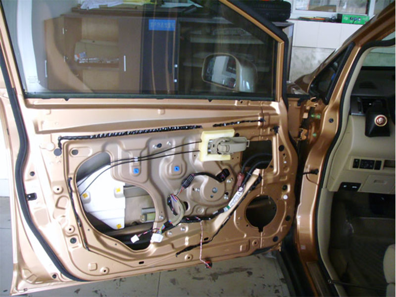 不拆開是不知道車門是這樣的.有好多的空洞,這些空洞對(duì)音響是非常不利,因?yàn)槔鹊穆曇舴譃檎嗯c反方向,聲音會(huì)相互相抵消,這也是喇叭為什么一定要裝到箱子才會(huì)出到好的聲音.要解決這個(gè)問題也不是一個(gè)難問題,用大能四門隔音:主要是用大能隔音王8張,施工部位里外各一張.主要作用1:隔車輛行駛過程中的風(fēng)噪