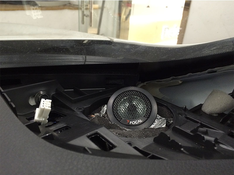 中低音已經(jīng)安裝到位了 ,現(xiàn)在開始安裝高音了,高音就裝在原車的高音儀表盤上A柱的下面原高音位